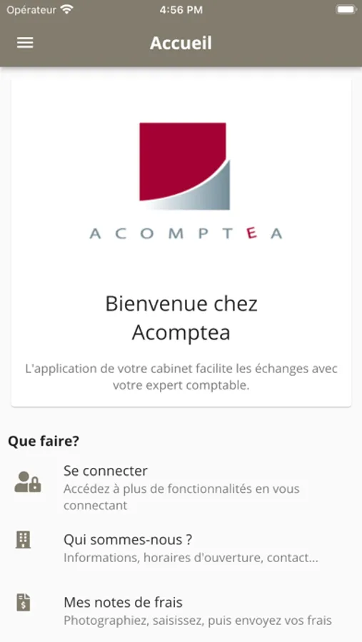 Because the world is changing, we offer you a handy application for managing your online account 7days/7 and 24h/24. This ease of use allows you anytime access to your documents, consult the news of the firm, or to gain visibility on various activities related to your record. We wish you a nice navigation!