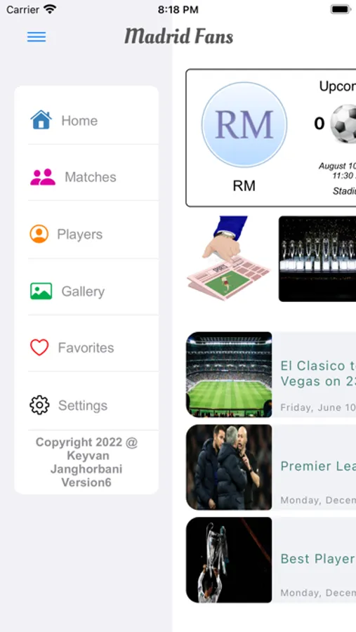 برنامه هواداران مادرید آخرین خبرهای باشگاه بعلاوه اطلاعات و عکس های بازیکن های این باشگاه را به شما نمایش می دهد
