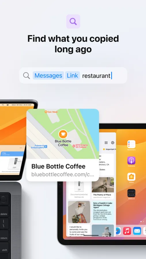 With instant iCloud sync, you can access all your copied content and pinboards at any time from your Mac, iPhone, or iPad.