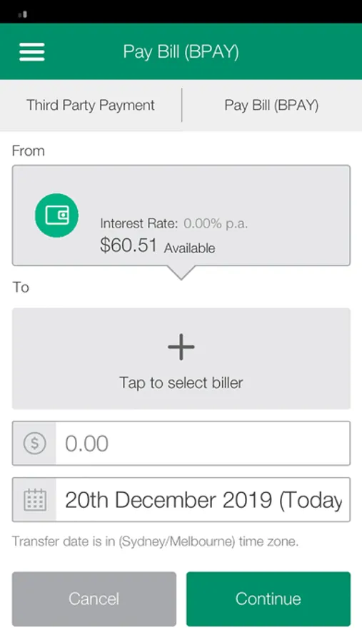 Use this app to pay your bills to existing billers using BPAY® Payments and view your BPAY® Payments and Transfer History.