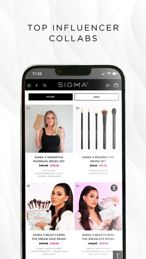 Obsessed with the best? Download the Sigma Beauty app to refresh your beauty routine. Easily browse and shop beauty on the go with the industry's best in brushes and brush care in your back pocket. Explore our universally flattering line of clean, cruelty-free makeup inspired by you and all the stunning looks you create every day. With the Sigma Beauty app, achieving that flawless complexion is just a tap away.