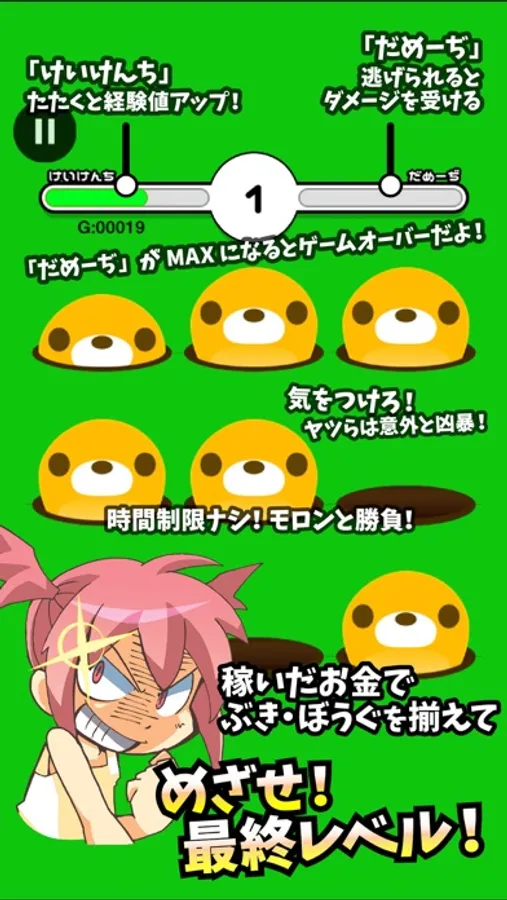 You can win the gold every time you hit a mole. Let equipped with more powerful weapons, armor.