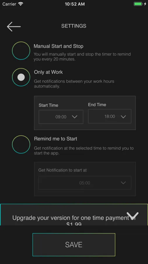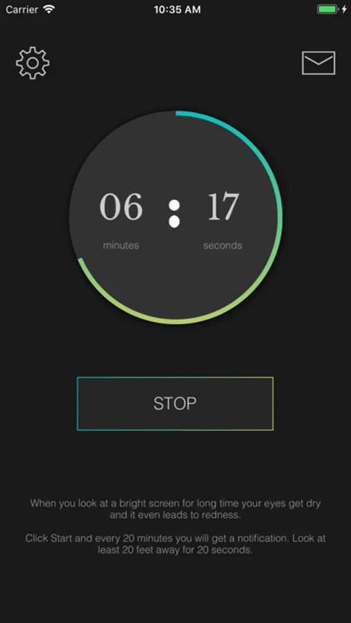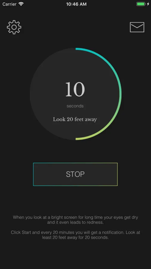 Eyecare 20 20 20 App is simple to use. Whenever you are going to start working on a computer, open the app and click Start. That's it. You can now close the app and it will keep sending you a notification every 20 minutes. Whenever you get that notification look away from your computer for about 20 seconds.