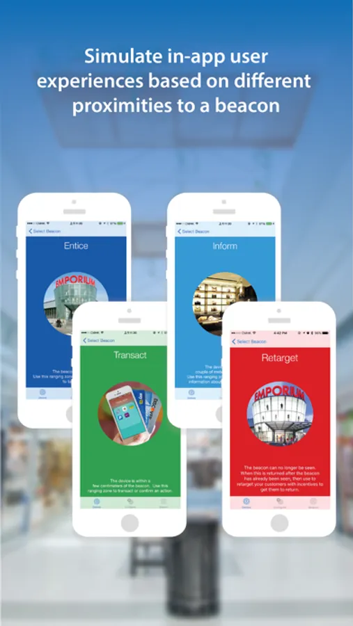 Proximity demonstration: Demonstrates how the device's proximity to the beacon can trigger 3 different states (immediate, near and far), also shows how an app can respond to the event of no longer being able to see a beacon.
