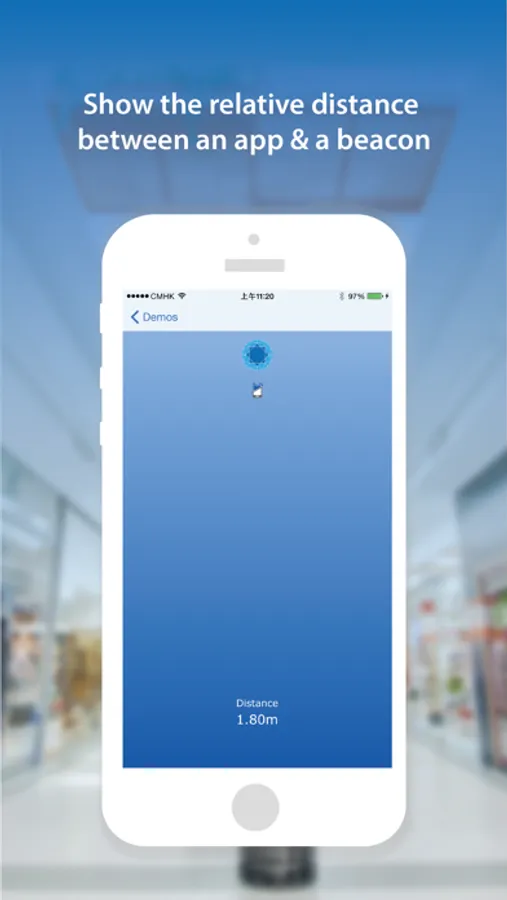 Distance demonstration: Demonstrates how an app is aware of a beacon's relative proximity when moving closer or further away from a beacon source and how the RSSI and power calibration of the beacon can be used to calculate a crude distance to the beacon source.