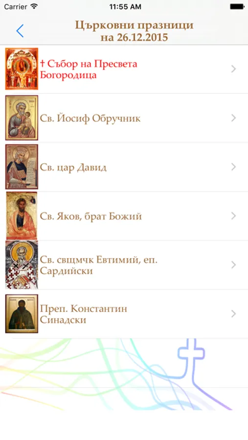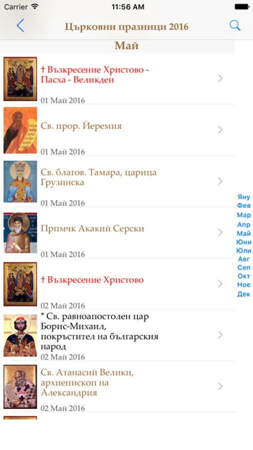 • Църковен календар за годините 2015-2022, с всички църковни празници в България, с описания и жития на светците, които се почитат;