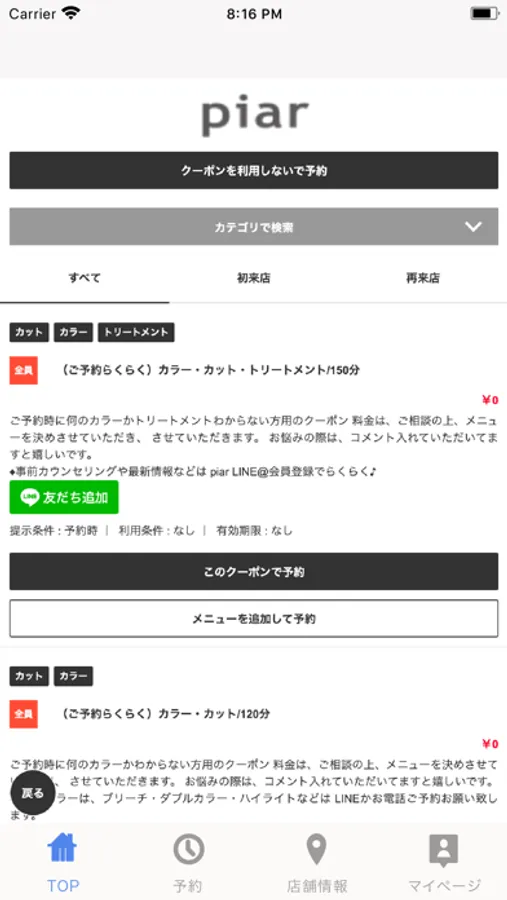 お得なクーポンが配信されます。ネット予約時にクーポン利用での予約も可能なので来店時もスムーズに施術頂けます。