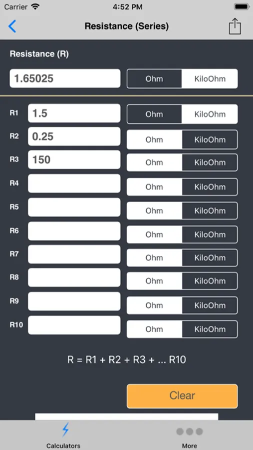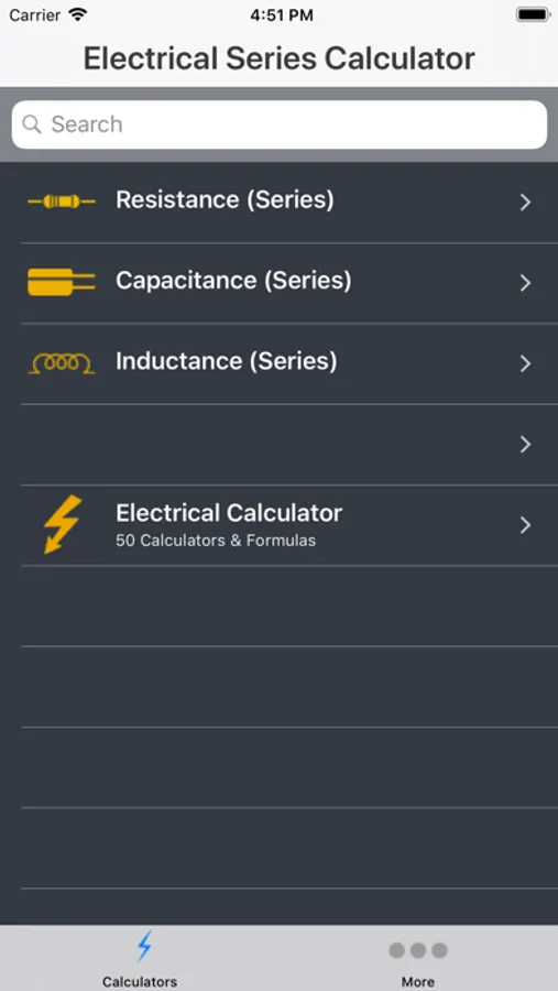 1. Resistance Series Calculator 2. Inductance Series Calculator 3.Capacitance Series Calculator.