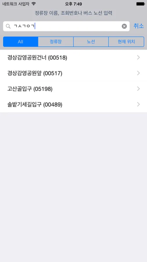 4. 등록된 버스, 정류장 중 현재 위치와 가까운 항목만 볼 수 있습니다.