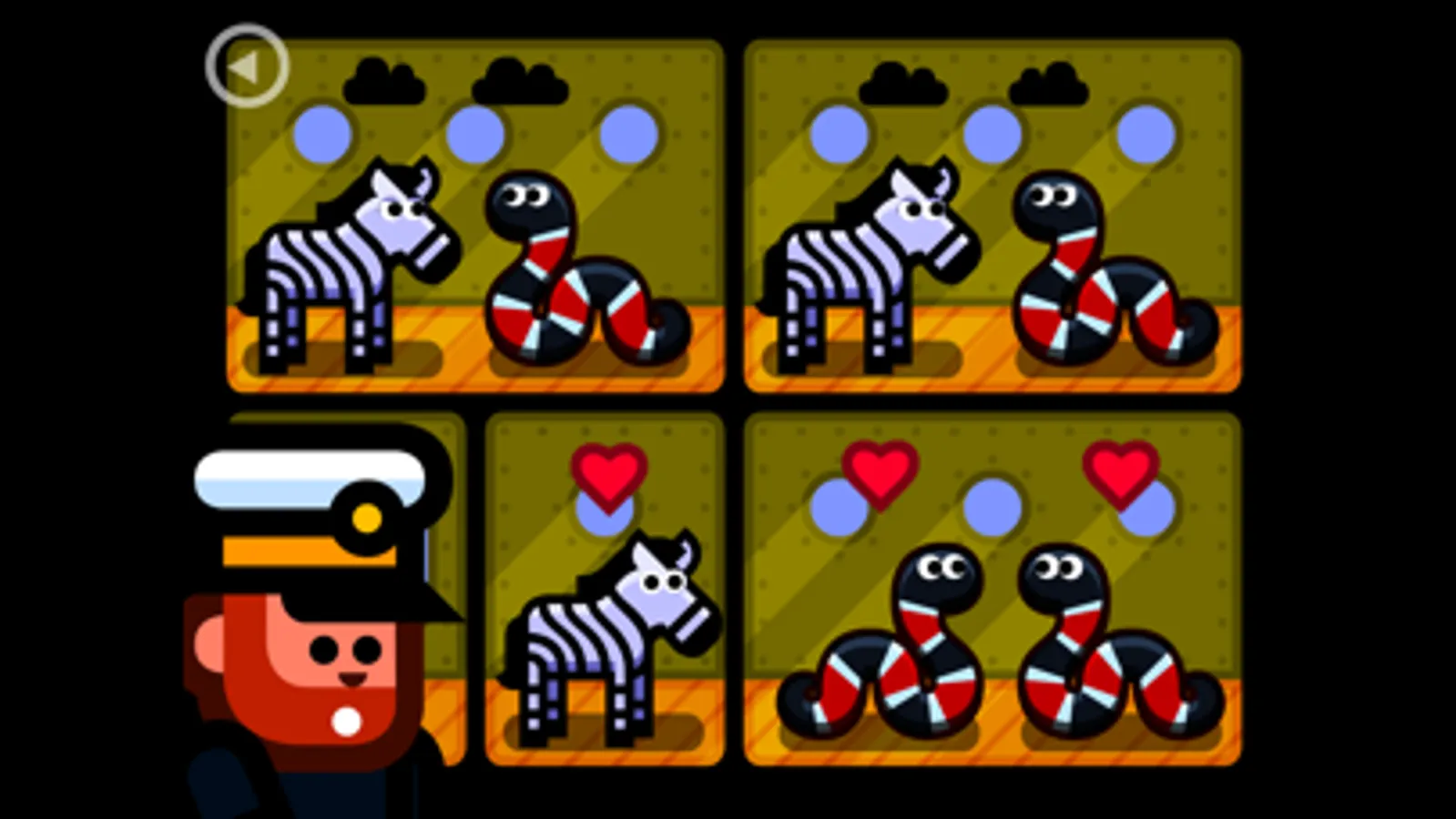 You’re the Animal Captain, a seasoned sailor and the proud owner of a small ferry which transports animals of all kinds across the sea. The ferry only has limited space, and the animals are therefore forced to share their cabin with other animals. Some animal species make great matches while others make horrible matches. For example, an elephant and a parrot make a great travelling duo, while a snake and a mouse are terrible roommates. It’s up to you to make sure all the animals are happy before departure, by swapping them between the rooms.