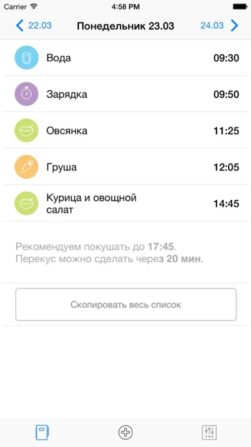 Скопируйте список за день и отправьте своему тренеру или куратору.