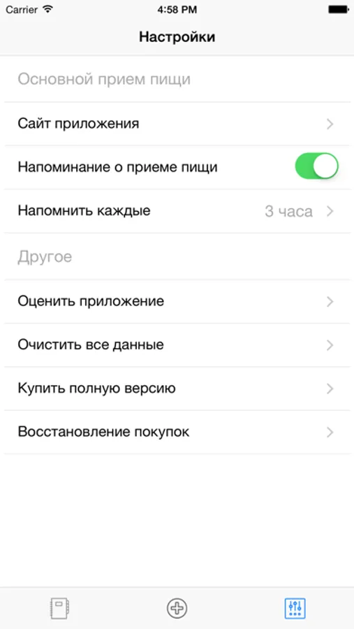 Напоминания о приеме пищи помогут вам не пропустить ваш следующий прием пищи. А запись тренеровок в дневник, поможет дисциплинировать.