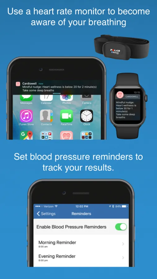 Cardiowell is the world's first digital therapeutic to reduce the risks associated with hypertension. Enhanced to allow for self and remote patient monitoring (RPM), Cardiowell is designed to help improve blood pressure, health and wellness. It accomplishes this by allowing for the remote monitoring and management of blood pressure while allowing users to develop awareness of breathing and heart rate activity. Cardiowell measures small changes in time between each heart beat (heart rate variability - HRV) and notifies you when you are under stress. Cardiowell supports a variety of heart rate monitors and blood pressure devices to allow for self-monitoring.