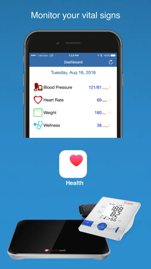 It also supports the Cardiowell blood pressure and weight scale. But you can always manually add blood pressure values and import blood pressure data from their party Apps using AppleHealth in order to monitor your health.