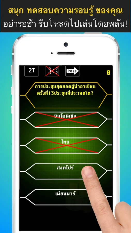 เกมเศรษฐี-ทายอาเซียน แอพเกมตอบคำถาม ประลองปัญญา-ท้ากึ๋น สไตร์ เกมเศรษฐี (ตอบคำถาม) สนุกไปพร้อมกับ การเตรียมตัวต้อนรับ "ประชาคมอาเซียน" เนื้อหาคำถามเจาะลึก กลุ่มประเทศอาเซียน และประชาคมอาเซียน เพื่อเตรียมความรู้ ต้อนรับการเข้าสู่ประชาคมอาเซียน โจทย์เยอะ ไม่ซ้ำในกันเกมแน่นอน