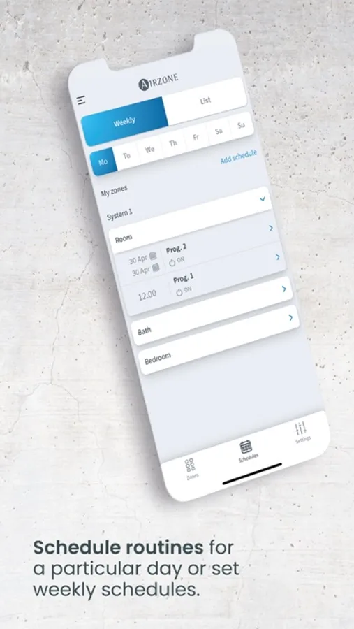 Easily create time schedules on a specific day or for the whole week and say goodbye to hassling with complicated AC remotes.