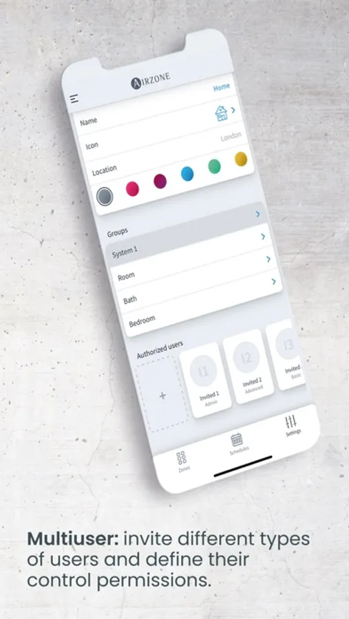 From your sofa or bed, at your office or while strolling at the park, the Airzone Cloud app lets you control the AC using your smart devices. Turn the air on or off and adjust the temperature in each room separately for maximum comfort with great savings.