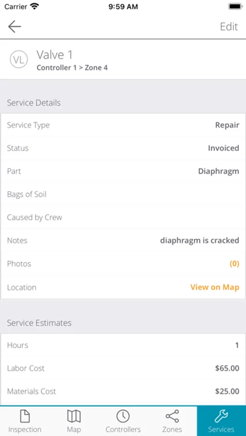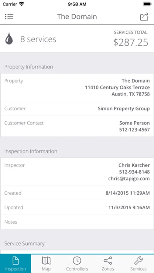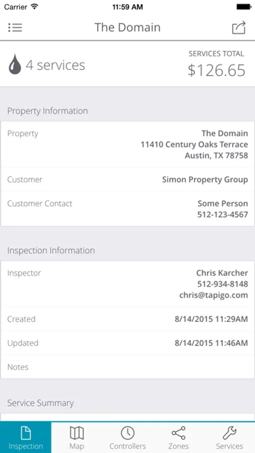 • Tapigo Approve (approval of the identified irrigation maintenance services for a given property)