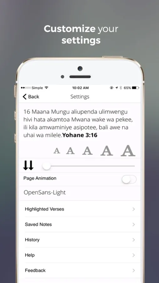 A simple, yet a powerful design allows users to easily read the Bible, navigate, highlight important verses, bookmark and take notes.