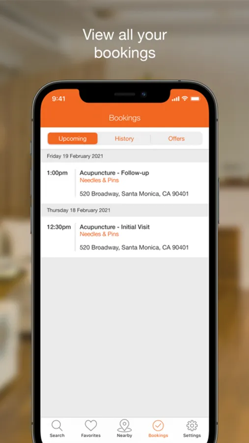 When you register and validate your email address, the app will automatically sync your booking history and your favorite Genbook businesses.