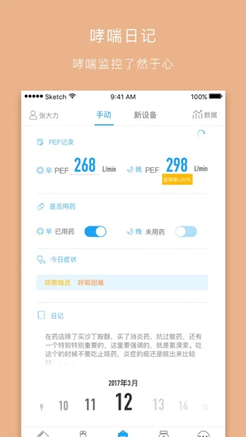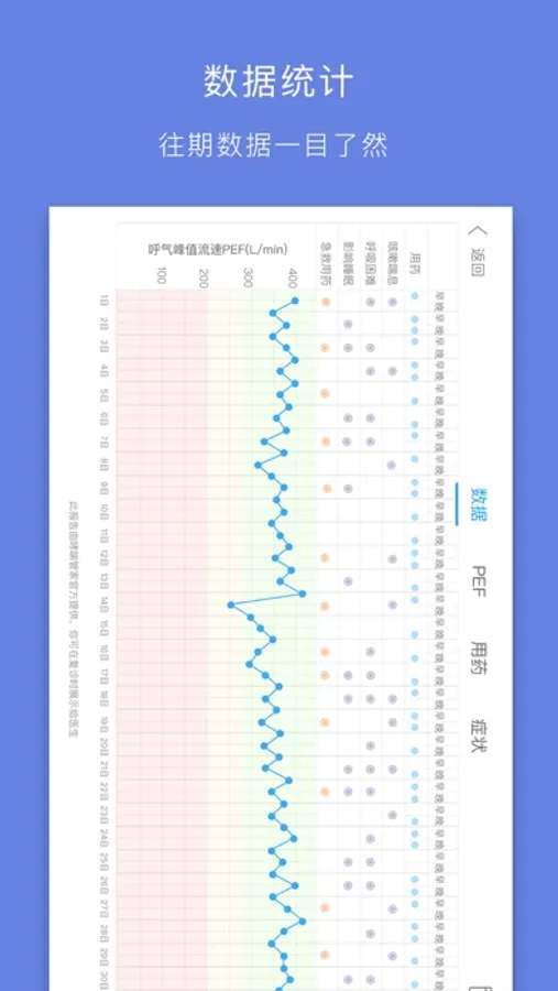 记录:通过智能用药管理仪及智能峰流速仪轻松记录用药状况和肺功能。评估用药依从性、疗效及发作风险。