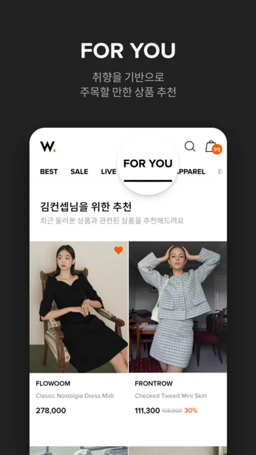 트렌디한 패션 아이템과 스타일을 만나볼 수 있는 W컨셉.