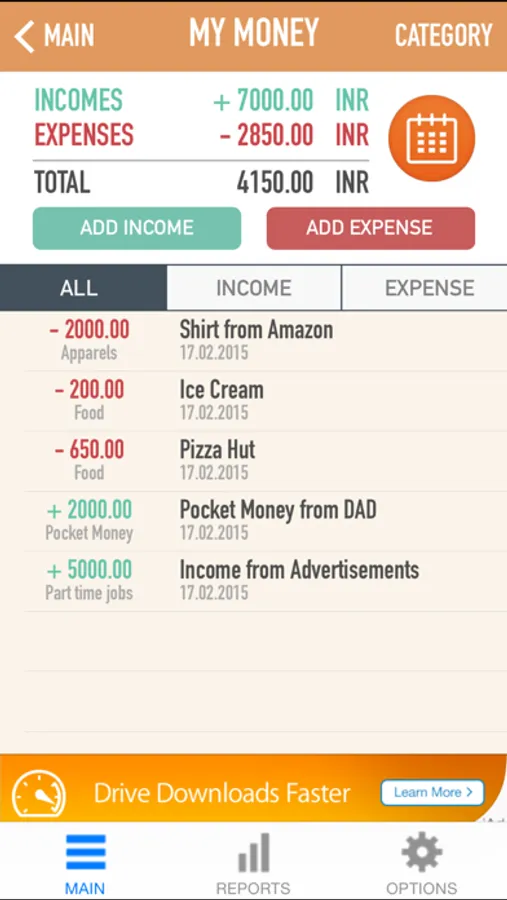 * Extensive Reporting feature to track your expenses category wise and date wise.
