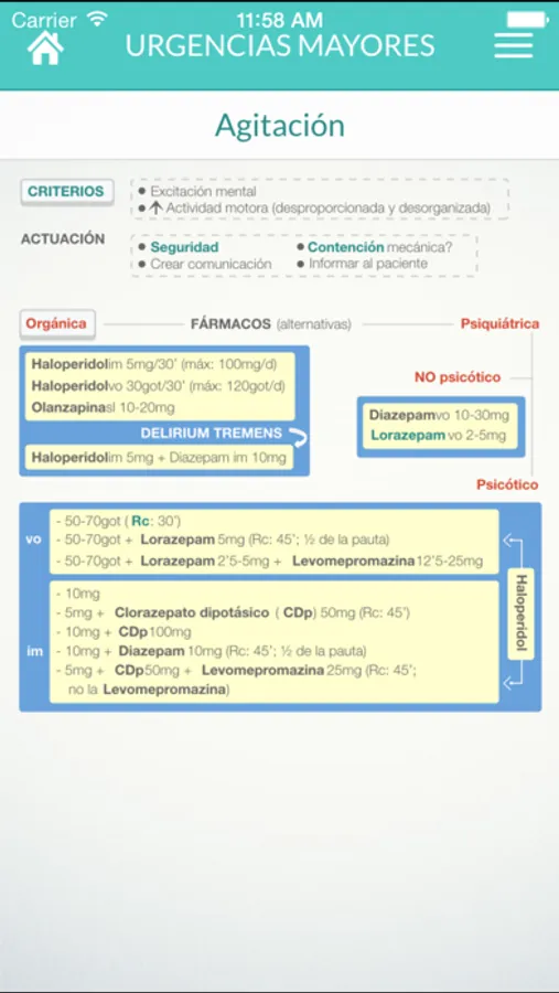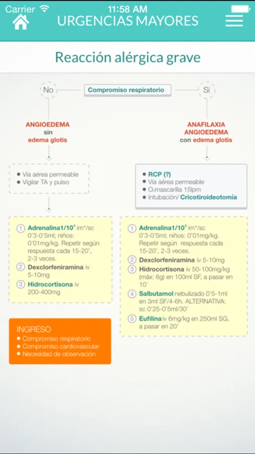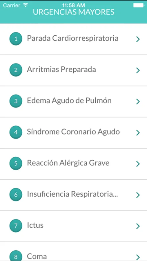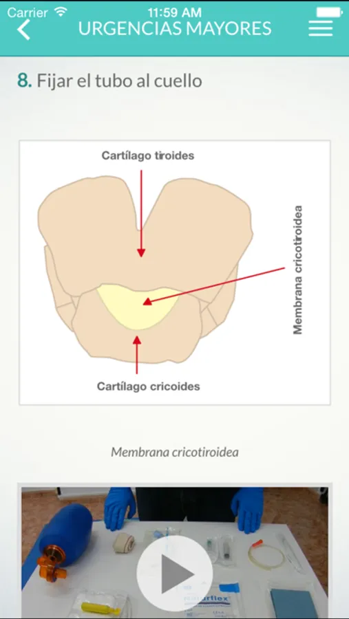 En esta aplicación se describen las siguientes urgencias vitales: parada cardiorrespiratoria, arritmias, edema agudo de pulmón, síndrome coronario agudo, reacción alérgica grave, insuficiencia respiratoria, ictus, coma, hipoglucemia, convulsiones, intoxicaciones, agitación y politraumatismos. Además de añadir la farmacopea básica, se detallan los diferentes procedimientos típicos de estas urgencias: cricotiroideotomía, desfibrilación, intubación, marcapasos transcutáneo, oxígenoterapia y toracostomía.
