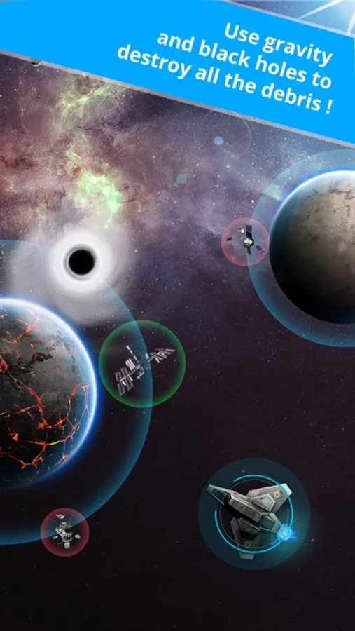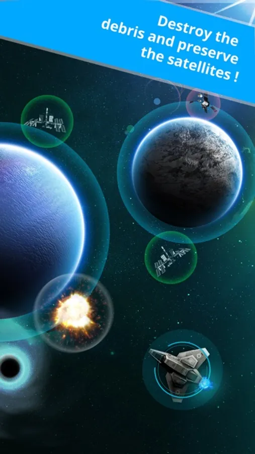 Member of the interstellar organization DarkCleaner, you have been recruited for a secret mission: clean the Space of all the debris to save the entire humanity. Use your different missiles and climb the grades to discover new worlds through this exciting adventure! The survival of our planets stands into your hands.
