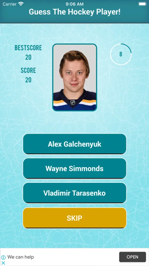 Hockey is popular sport in upper northern hemisphere. Here is a game full of fun for hockey fans. Identify the player in picture and select the correct name from choice and move next.