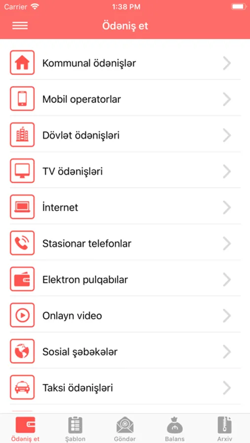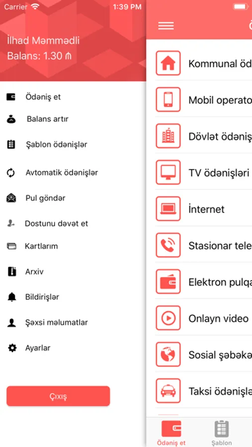 Portmanat vasitəsilə mövcüd olan ödəmə xidmətləri: