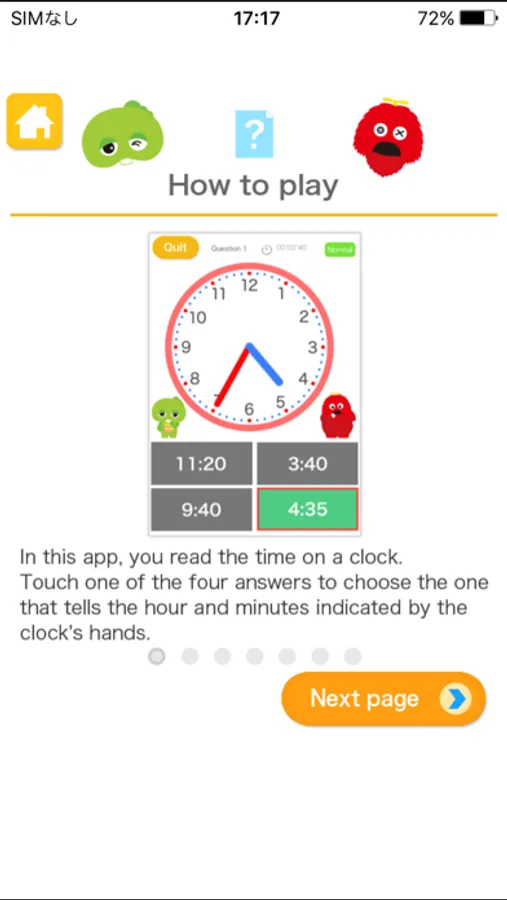 This is an app in which you must choose which of the panels matches the time shown on a clock.