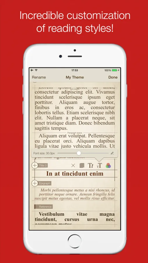 • finest configuration of a book layout for the most comfortable reading: everything like fonts, font size, colors, background is adjustable, including paragraph and line spacing;