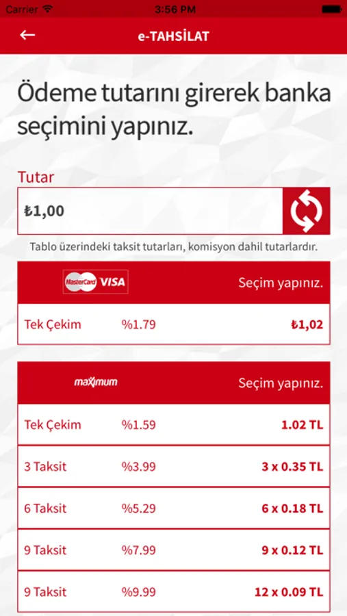 Müşterilerinizden veya alacaklı olduğunuz kişilerden tahsilatlarınızı kredi kartı ile ister tek çekim, ister taksitle yapabilirsiniz. Turk Elektronik Para A.Ş.'nin Elektronik Tahsilat Sistemini kullanarak 7 kart programı ile (World, Bonus, Axess, Paraf, Maximum, CardFinans, Advantage) tek çekim ya da 3, 6, 9, 12 taksit şeklinde tahsilat yapabilirsiniz.