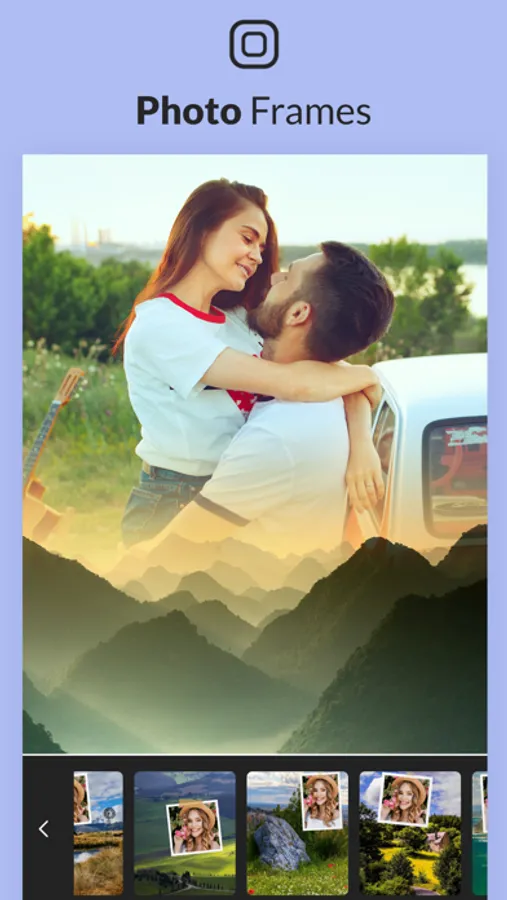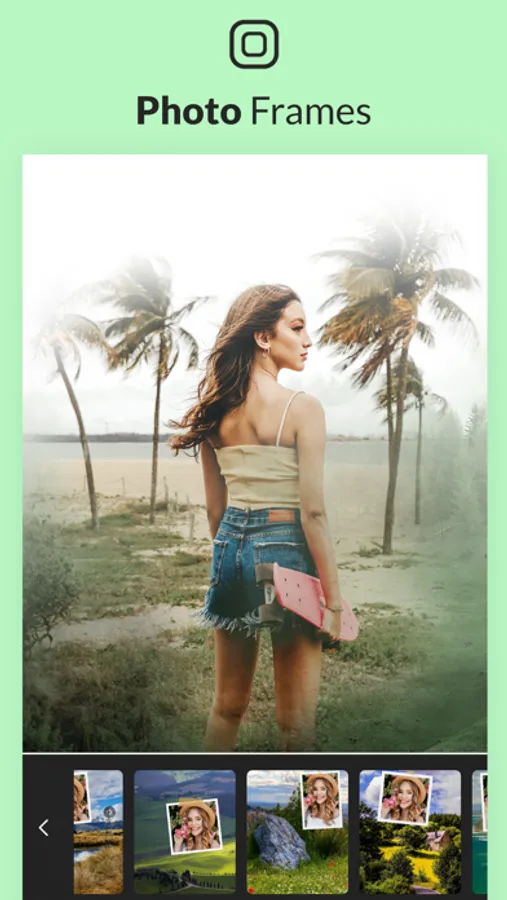 • Select a picture or a selfie from the gallery and use this Green Hill Photo frame