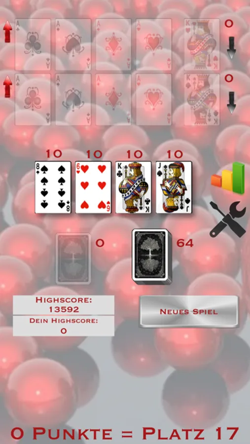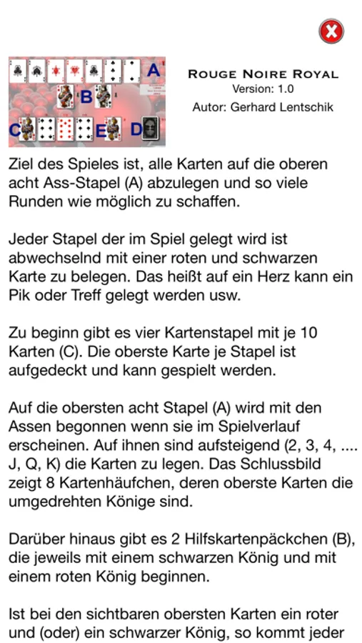 The aim of the game is to file all foundation piles (A) and play so many rounds as possible.