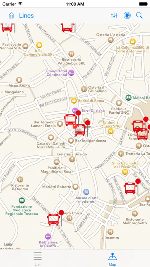 - cercare linee e fermate a te più vicine o che ti interessano;