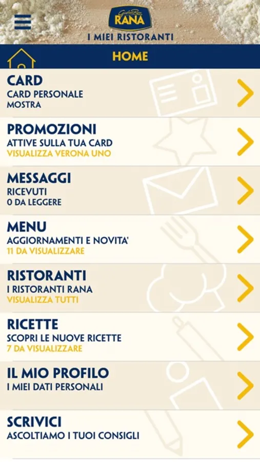 Scarica l'APP Ufficiale e scopri le novità e le promozioni esclusive, potrai inoltre trovare i miei Ristoranti in giro per l'Italia e avere una selezione di nuove ricette