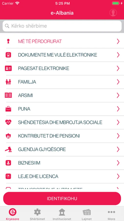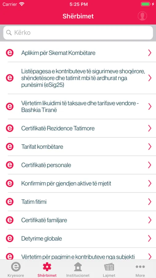 Faturat e energjisë elektrike, kundravajtjet rrugore (gjobat), pikët e drejtuesit të mjetit, gjurmimi i çështjeve gjyqësore, taksat e automjetit, të dhëna të gjendjes civile, regjistrimi fillestar i biznesit pranë Qendrës Kombëtare të Regjistrimit, taksat dhe tarifat vendore, notat e provimeve të maturës, lista e barnave të rimbursueshme, të dhënat e Kartës së Shëndetit etj. vijnë në çdo moment në telefonin apo tabletin tuaj nëpërmjet aplikacionit e-albania.