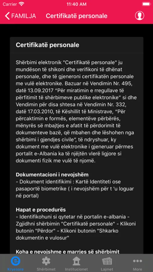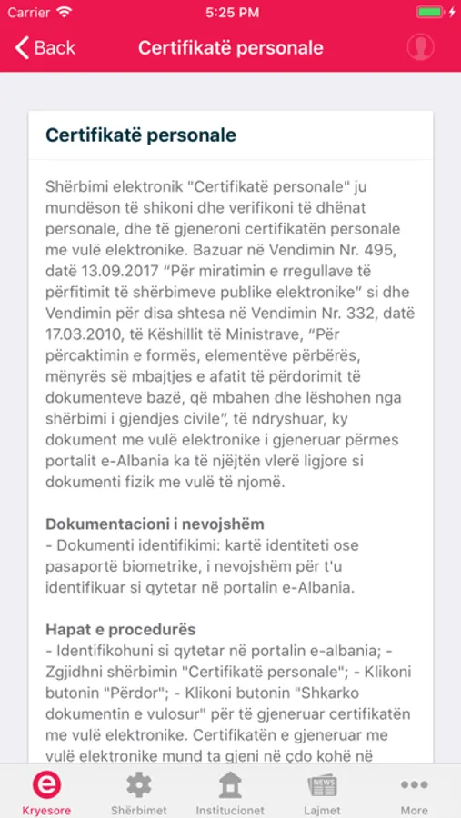 Aplikacioni “e-albania.al” shërben si një portë, nëpërmjet së cilës çdo person i interesuar mund të marrë nëpërmjet internetit, në çdo kohë dhe nga kudo shërbime elektronike të ofruara nga institucionet publike në Shqipëri.