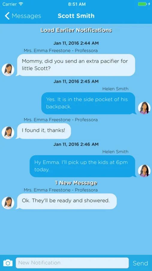 * Messages: send a message straight to your kids’ teacher or to daycare principal and be notified when you receive a response.