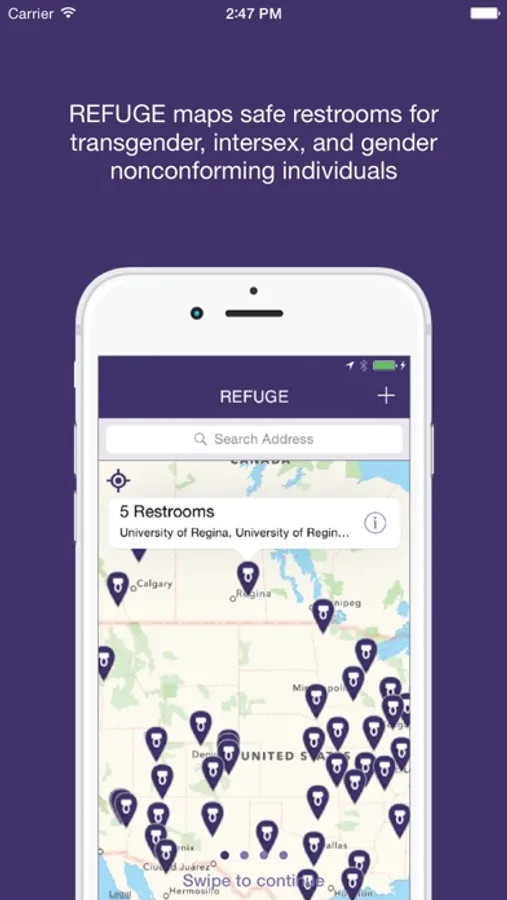 REFUGE maps safe restrooms for transgender, intersex, and gender nonconforming individuals.