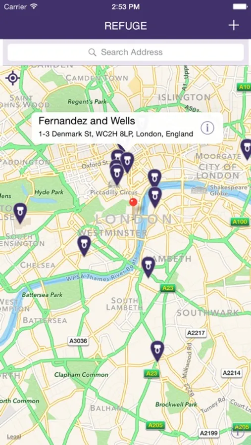 - Use the search bar to zoom to a specific address and view restrooms nearby - great for everyday use or travel.