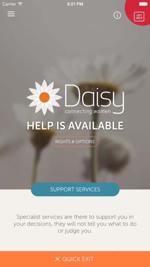 Daisy is free and connects women around Australia to services providing support for the impacts of sexual assault family violence and domestic violence. Family members and friends can also use Daisy to gather information and support women’s decision making. Before downloading this App or sharing it with anyone consider safety. If a device is not private, it may not be safe to download or share.