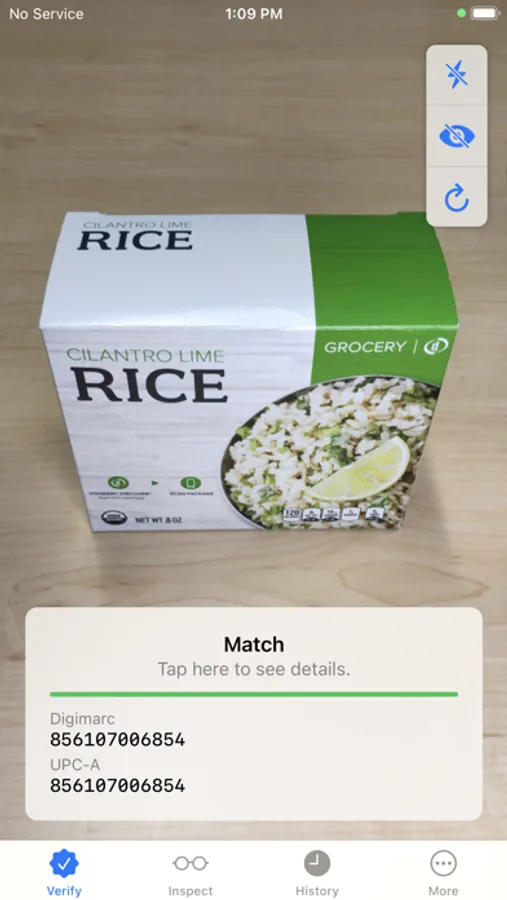 - The app will compare the Digimarc Barcode to the traditional 1D barcode and display the result as well as other details about the package