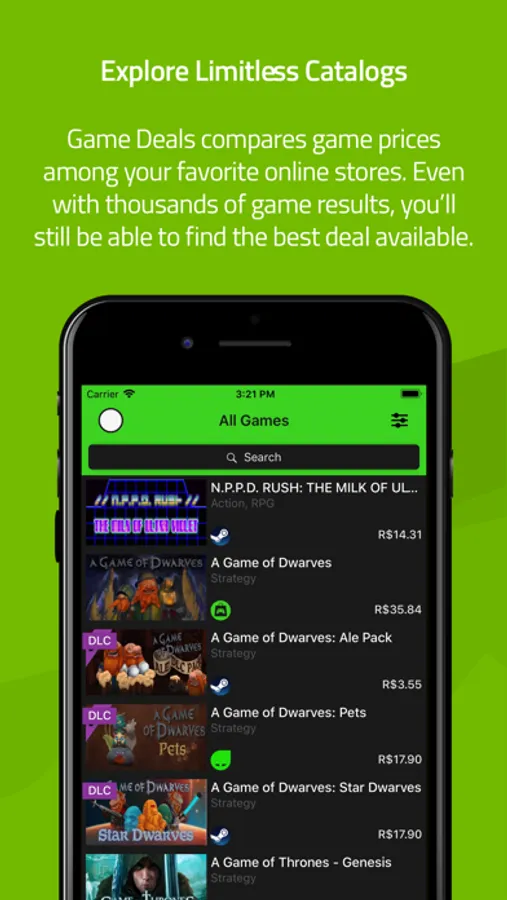 Games found on the Razer Game Deals Mobile app all have their prices compared across the top digital stores, so you can have a peace of mind knowing that all the games you buy are not just at the best price, but are also legal and reliable.
