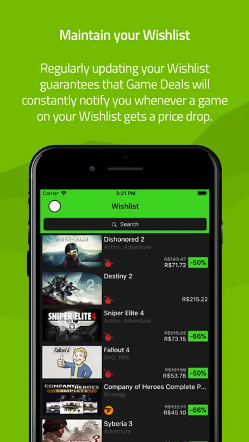 Even when you’re out with your friends, you don’t have to miss out on any deals. Razer Game Deals Mobile sends you updates whenever there's a promotion for any game on your Wishlist. You can also browse, search and compare prices, so shopping for the best deals is incredibly convenient. Whether you are into racing games, shooting games, strategy games or any other kind of games, the Razer Game Deals Mobile app will be your best tool in constantly looking out for the best deals for them. Download the app and try it out today!