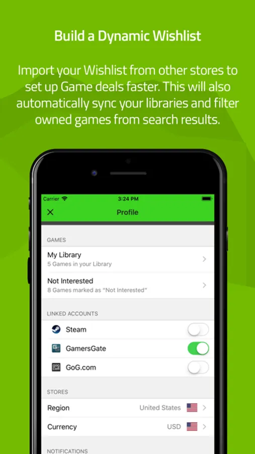 No one likes missing a price drop or a flash sale, which is why Game Deals is engineered to prevent that from happening to you. By simply adding the titles you want to your Wishlist, Game Deals notifies you the second there’s a price drop. You can also import your wishlist from other stores like Steam, Gamersgate, and GOG.com, and receive the same instant updates, so you’ll never miss a deal you’re interested in.