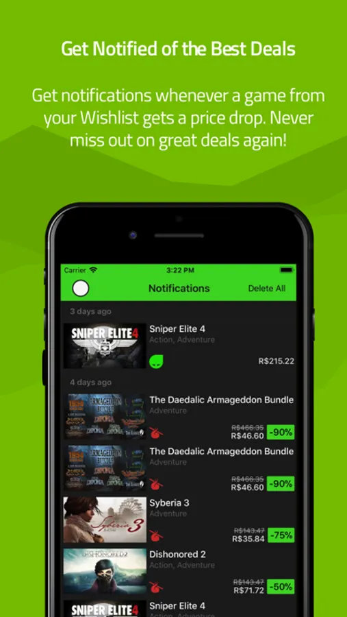 Razer Game Deals is now available in app form, so you will never miss the best online gaming deals again! Take charge of your wishlist and ensure you always get your favorite game titles at the lowest possible price, anytime, anywhere.