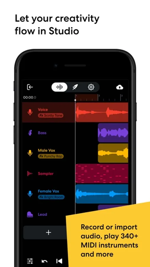 Enter our multi-track Studio, an intuitive Digital Audio Workstation (DAW) to record, edit, and remix your music. Easily record music on the go, apply built-in effects, or find loops and samples from our royalty-free sound packs to build a beat. You can even access our music transcription tool AudioStretch right within the app! With creator-friendly tools like Metronome, Tuner, and AutoPitch (an Auto-Tune alternative), you’ll never run out of ways to create.